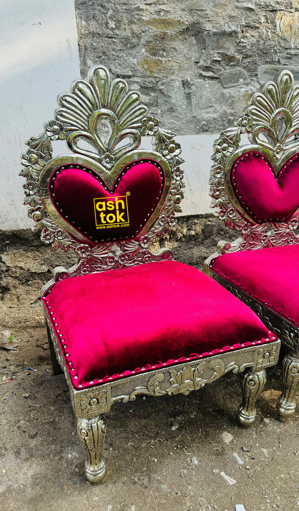 The chowki features a premium German silver finish with finely detailed traditional motifs on the frame, legs, and backrest. The plush velvet cushion enhances comfort while adding a vibrant, regal touch. Crafted for strength and stability, this chowki blends traditional artistry with lasting durability.