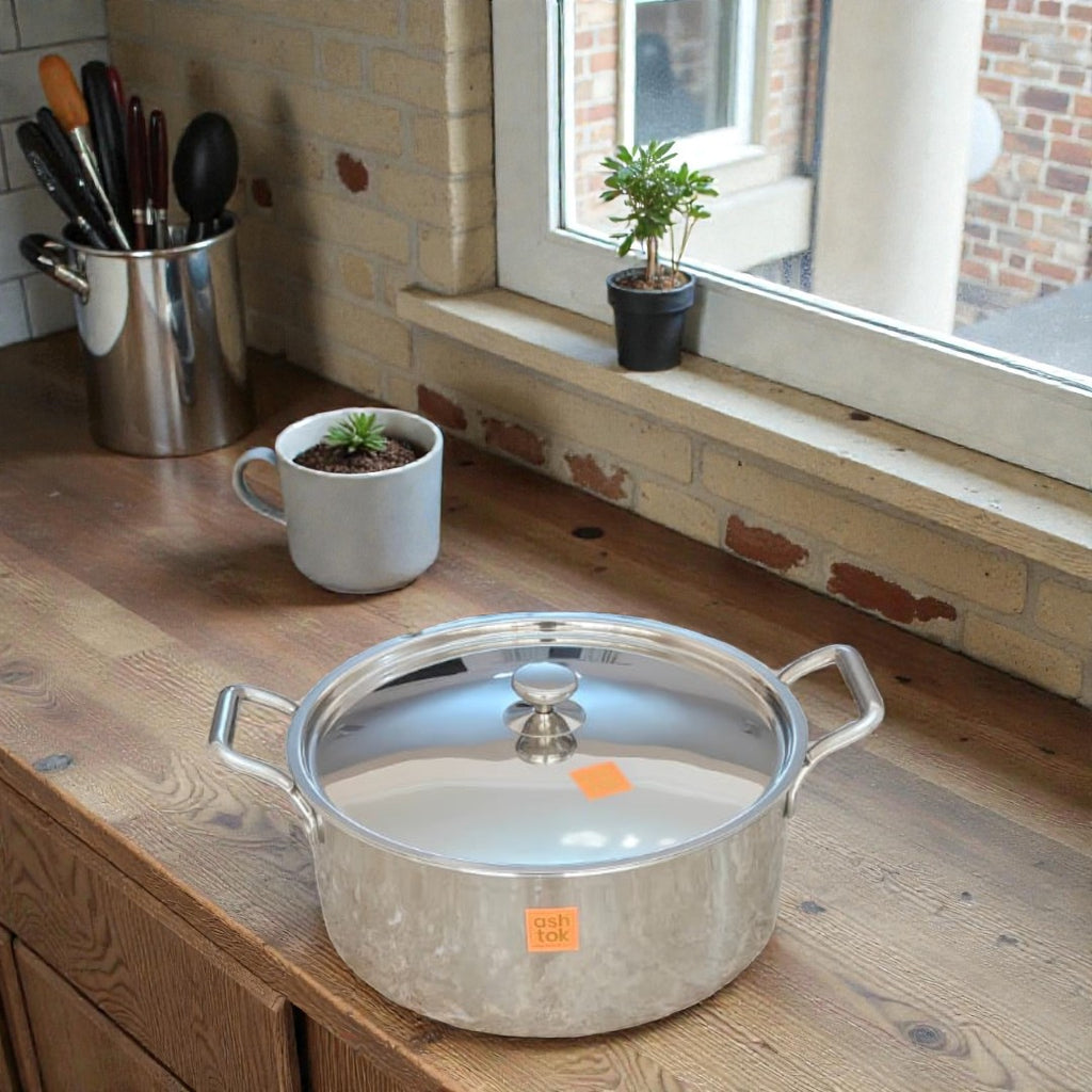 At Ashtok, we bring you cookware that not only looks elegant but also performs exceptionally well. Crafted using advanced triply construction, this stainless steel handi is ideal for cooking curries, gravies, dals, biryanis, vegetables, and slow-cooked Indian dishes with authentic taste and aroma.
